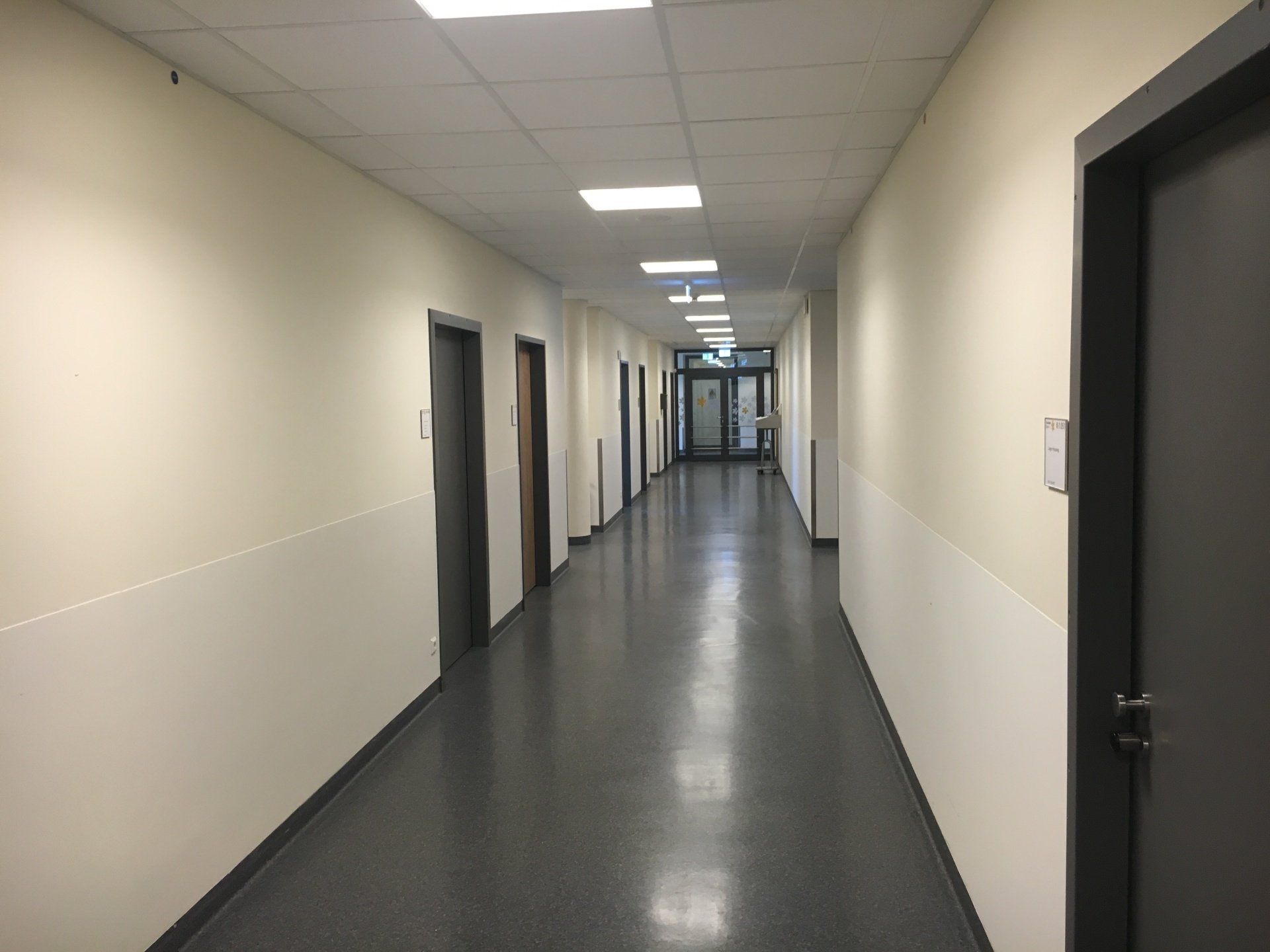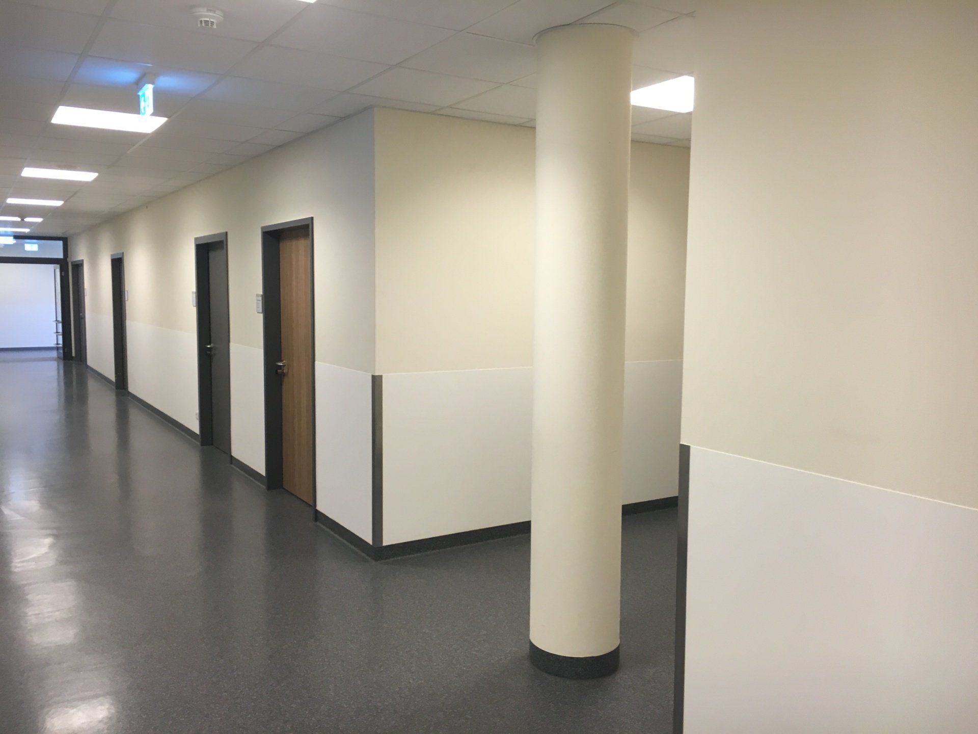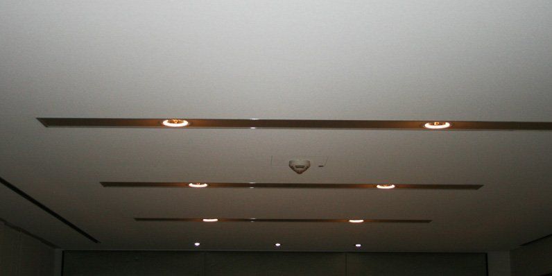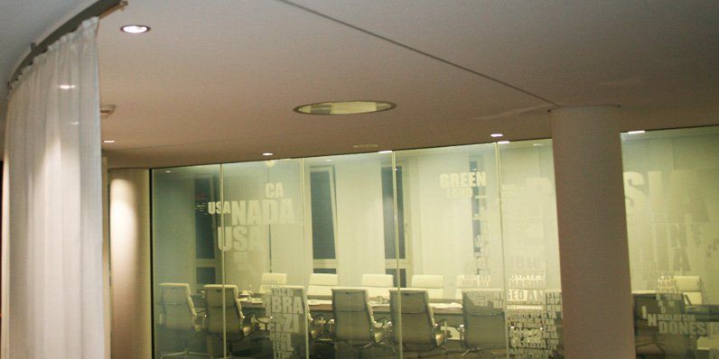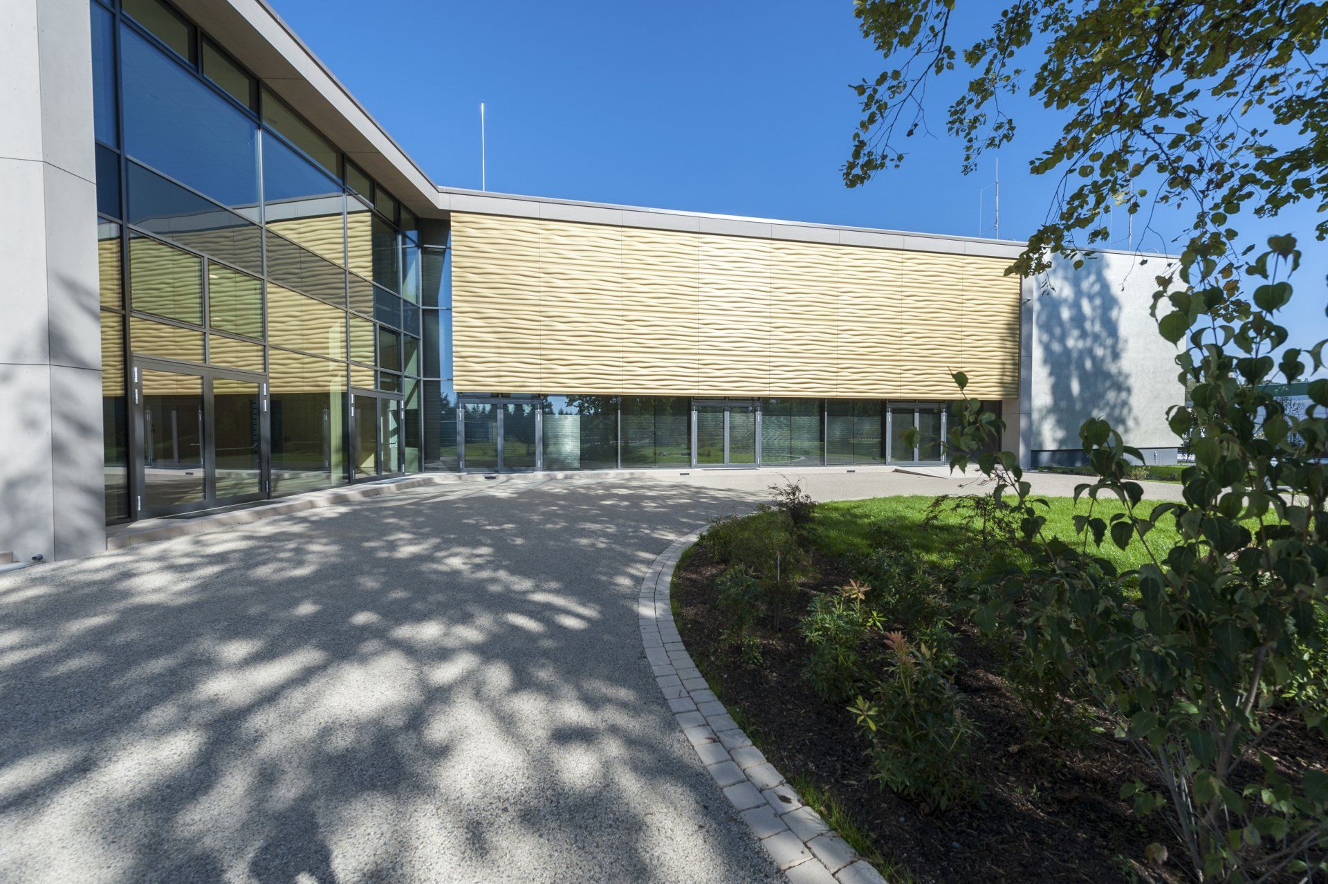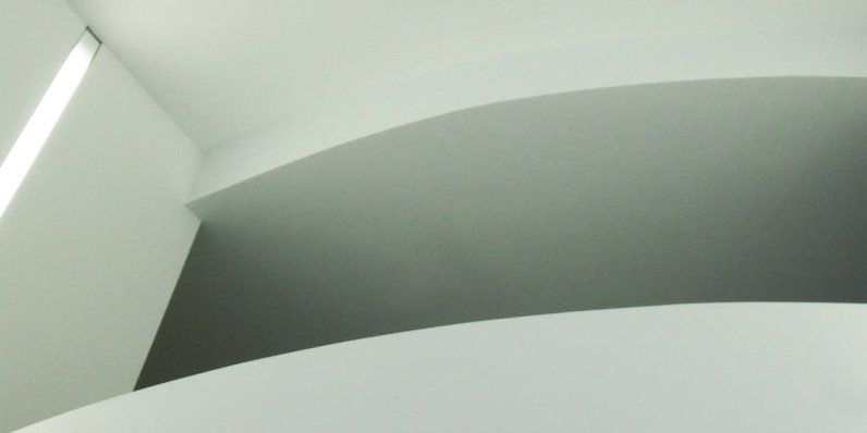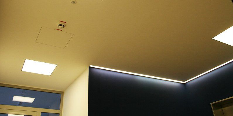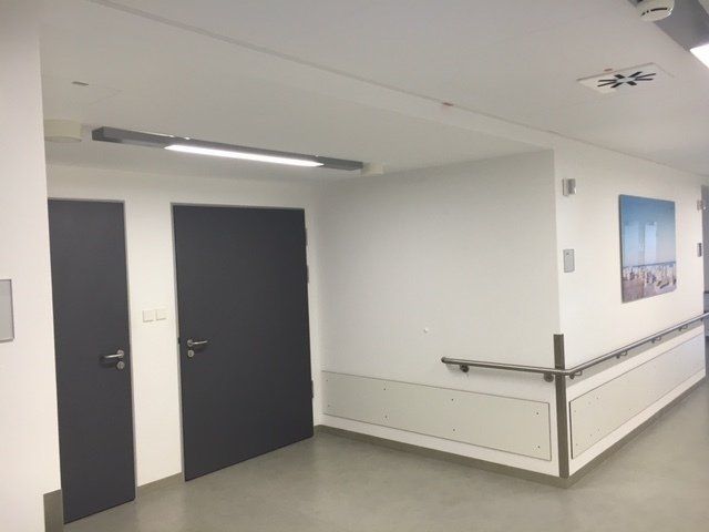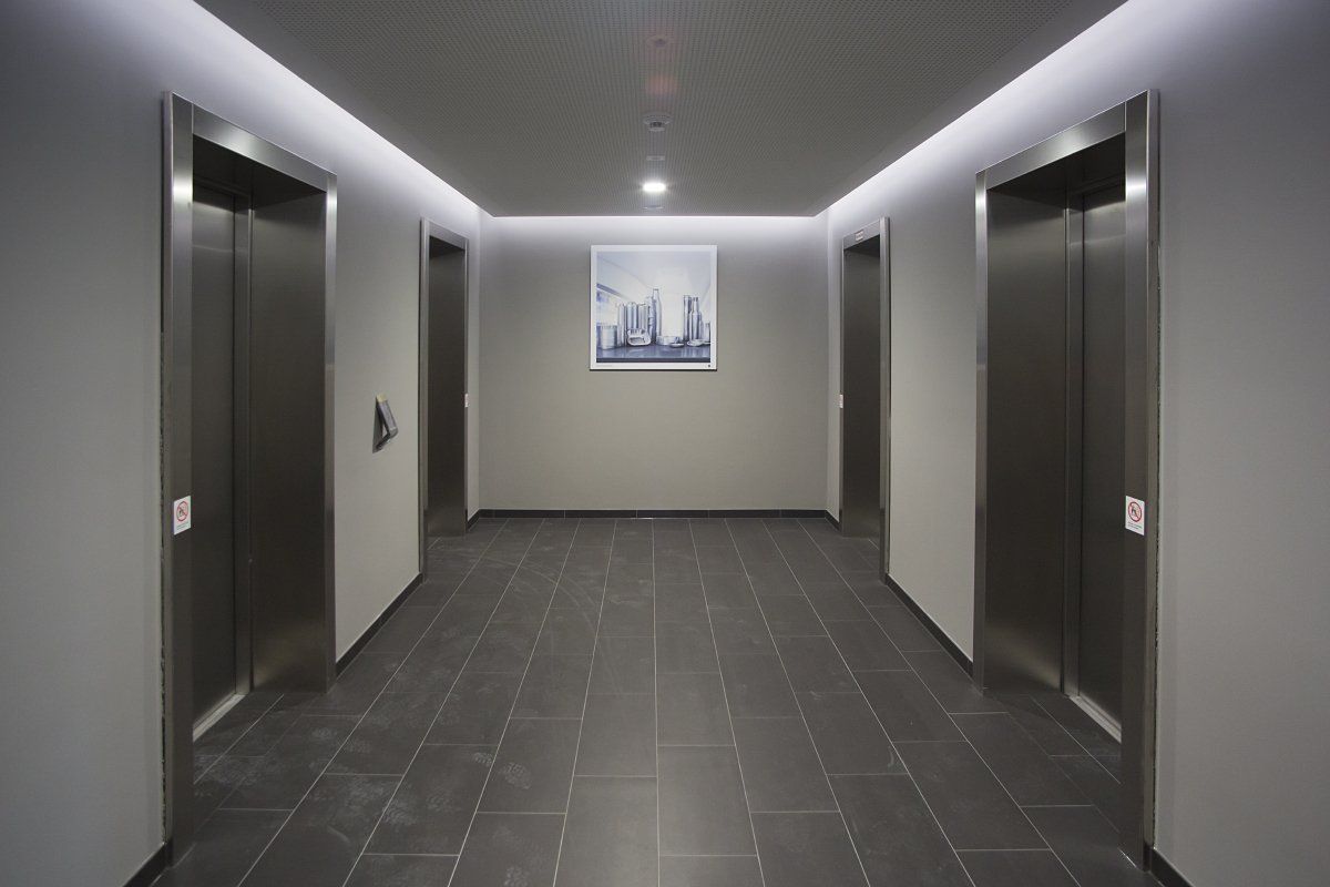 Ausführung: Abgehängte Decken als Heiz- und Kühldecken sowie Heiz- und Kühlsegel in geneigter Form ausgeführt, gekrümmten Wandelemente, Bauelemente mit hohen Anforderungen als Holz-Akustikwand-Verkleidungen schallabsorbierend und