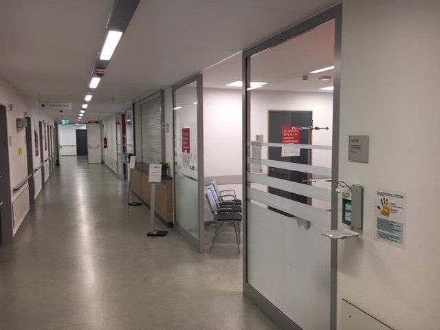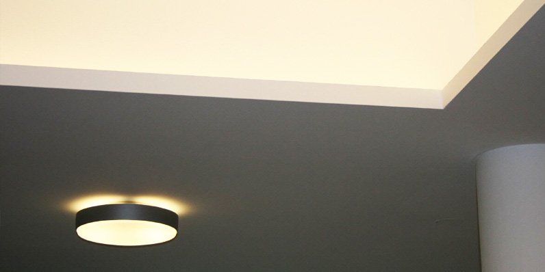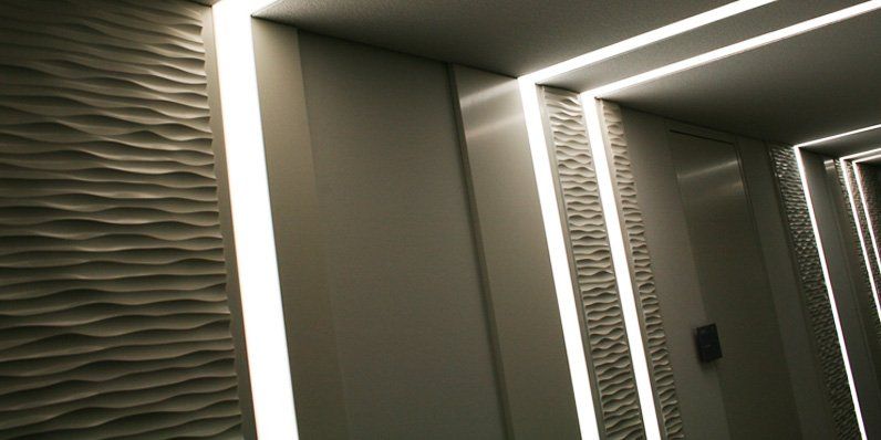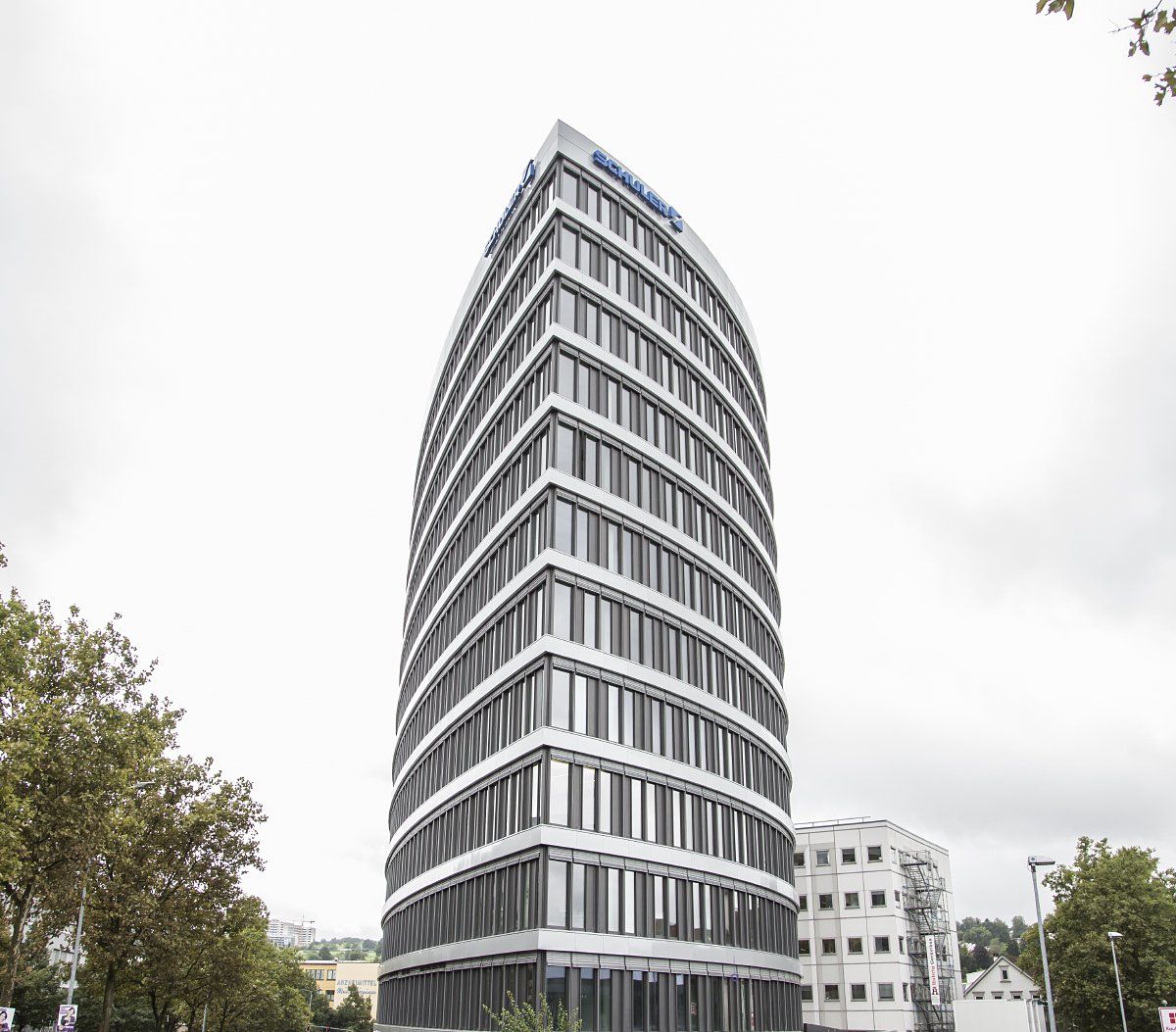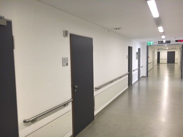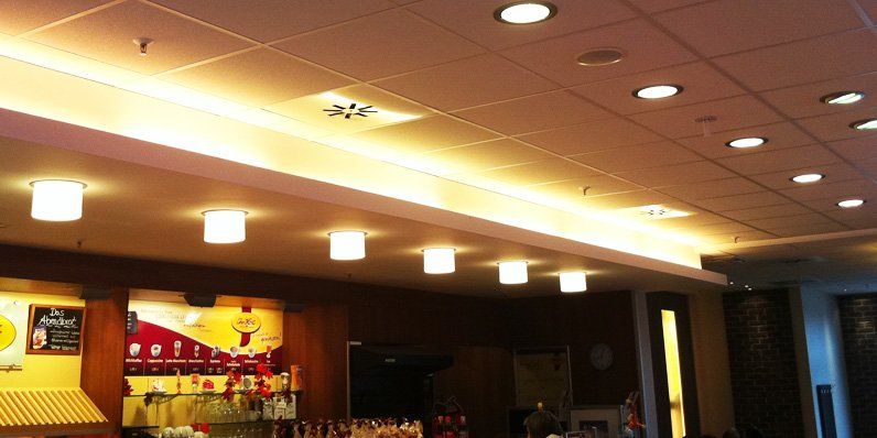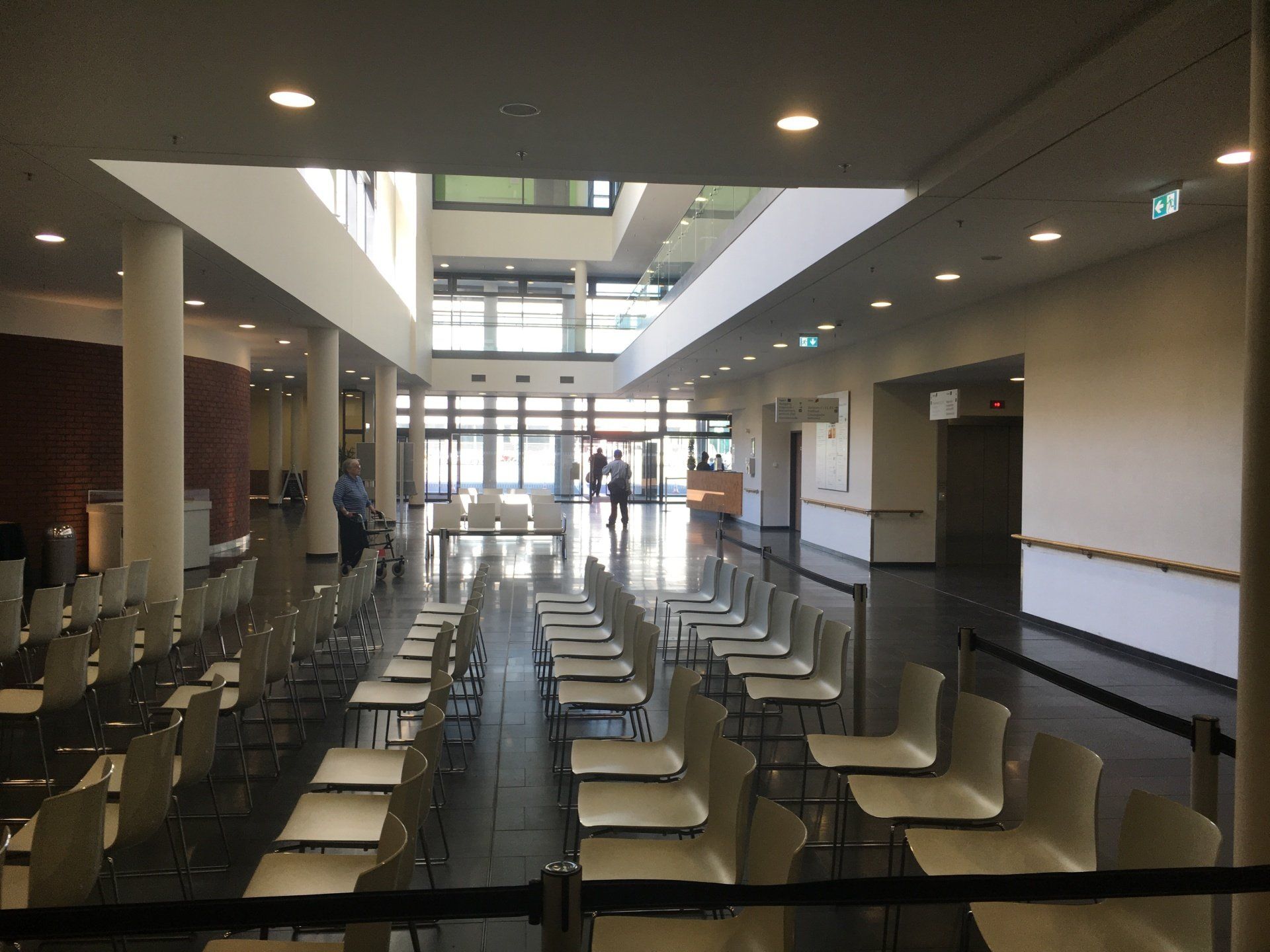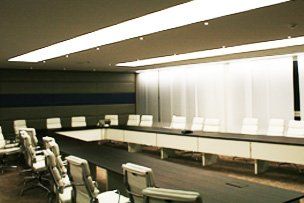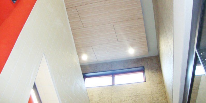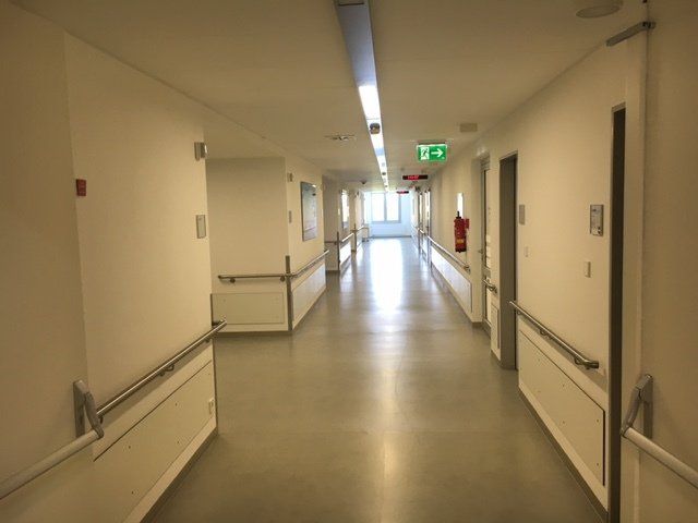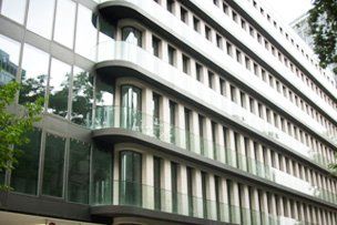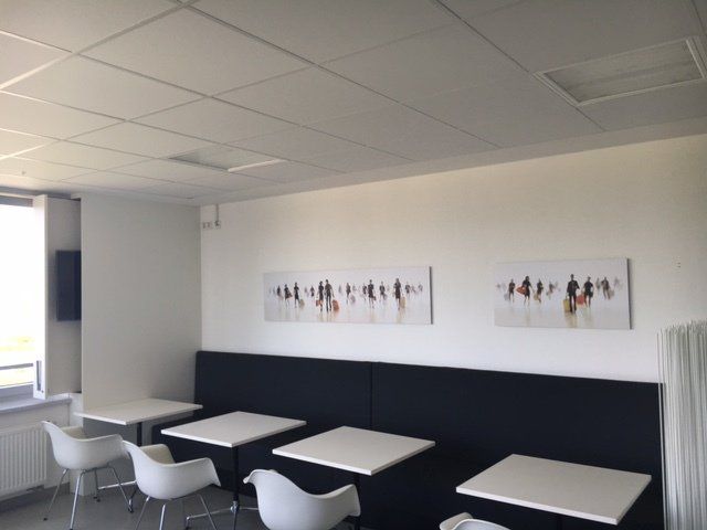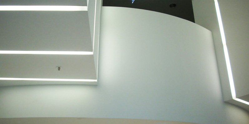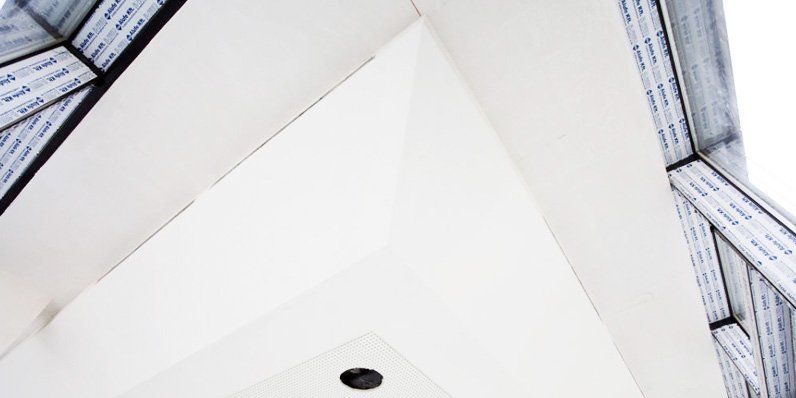 Ausführung: Abgehängte Decken als Heiz- und Kühldecken sowie Heiz- und Kühlsegel in geneigter Form ausgeführt, gekrümmten Wandelemente, Bauelemente mit hohen Anforderungen als Holz-Akustikwand-Verkleidungen schallabsorbierend und